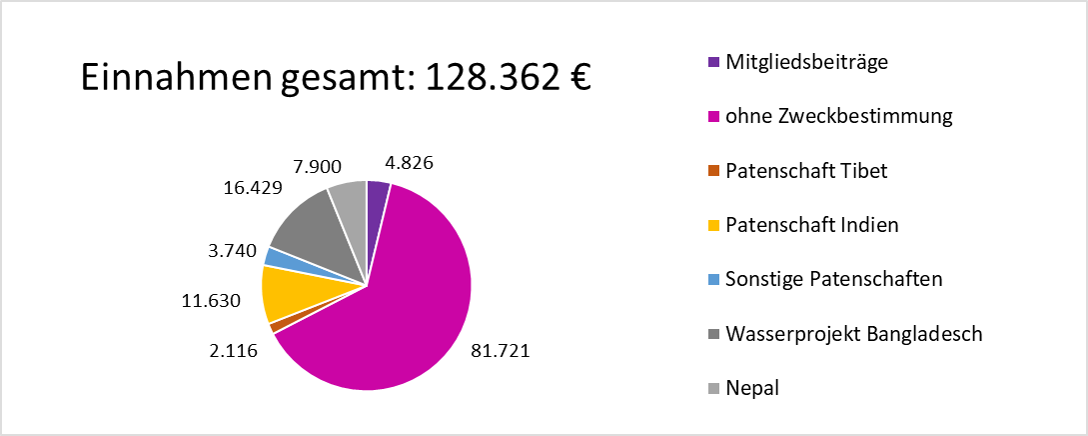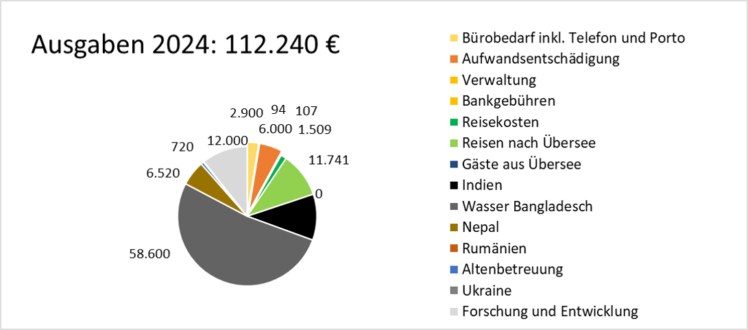 Ein erheblicher Teil der Einnahmen wurde 2024 für Bangladesch verwendet - insbesondere sachgebundene Drittmittel. Daneben haben wir auch tolle Projekte in Nepal umgesetzt. Bedingt durch die Drittmittelprojekte fielen dieses Jahr viele Kosten für Forschung und Reisen an. Wie in den letzten Jahren konnte der Anteil der Verwaltungskosten mit 3 % und der Personalkosten in Deutschland mit 5 % sehr niedrig gehalten werden. Mit wenigen Ausnahmen, d.h. für die Bearbeitung von Drittmittelprojekten arbeiten wir in Deutschland vollständig ehrenamtlich. Diese Arbeit ist machmal sehr viel, aber es macht sehr großen Spaß. Wir danken für Ihr Vertrauen!
