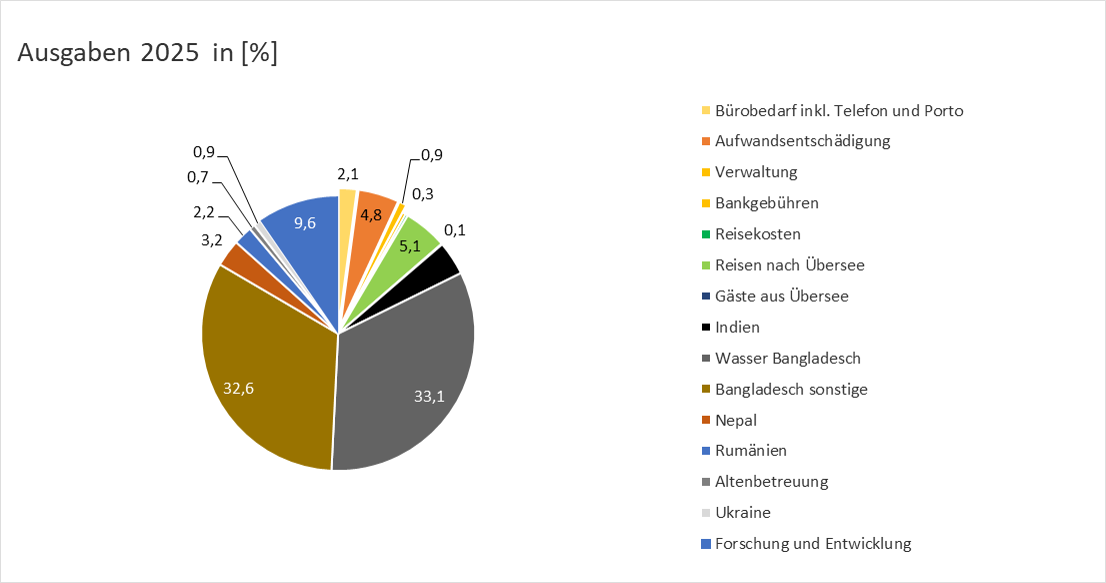 Da wir ein kleiner Verein sind, ist es uns möglich, die Allgemeinkosten gering zu halten. Sie lagen in den letzten Jahren immer unter 5% der Gesamtmittel.